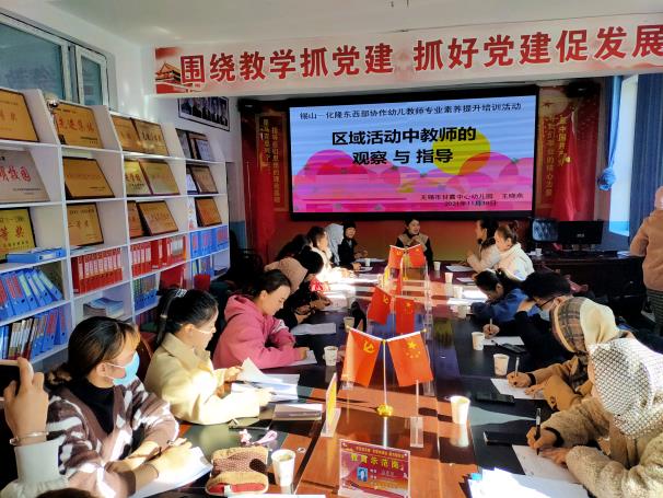 专题讲座《区域活动中教师的观察与指导》是王园长在支教将近一年来,了解本地幼儿园开展的区域游戏现状后,进行针对性的指导和帮助。王园长通过很多案例让老师们了解区域活动中老师观察的方式和必要性,然后再针对孩子的游戏进行有效指导,不断帮助孩子提升游戏能力并获得发展。本次专题讲座,有效解决了教师的困惑,让参与培训活动的老师们受益匪浅。