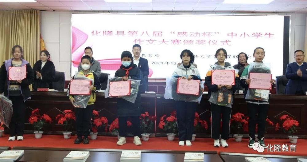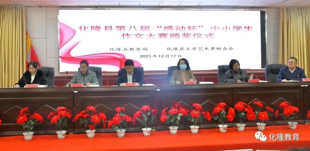 12月17日上午,由化隆县教育局、化隆县文学艺术界联合会联合举办的第八届“感动杯”中小学生征文大赛获奖作品颁奖仪式在新区中学3号会议室隆重举行。县委宣传部副部长李玉峰、县文联主席李成虎、县作家及评论家协会副主席权文珍、新区中学校长李仁杰以及300余名师生参加颁奖仪式,县政府副县长冶桂兰出席仪式并作了总结讲话。活动由县教育局党组书记、局长马玉忠主持。