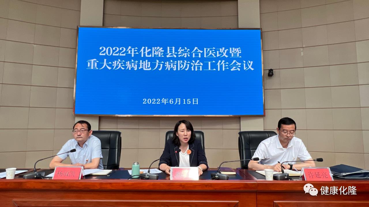 为全面推动综合医改和重大疾病地方病防治工作持续健康发展,6月15日,化隆县召开2022年综合医改暨重大疾病地方病防治工作会议。县政府副县长、县综合医改工作领导小组副组长、县重大疾病和地方病防治工作领导小组副组长冶桂兰,县综合医改工作领导小组和重大疾病地方病防治工作领导小组各成员单位负责同志,各乡镇乡镇长,各县级医疗卫生单位负责同志参加会议。