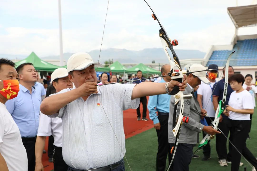 | 为深入学习贯彻省第十四次党代会精神,喜迎党的二十大胜利召开,弘扬传统文化,倡导全民健身,凝聚奋进力量,8月4日,由化隆县委组织部、化隆县老干部局主办,化隆县老年射箭协会承办的化隆县“喜迎党的二十大 奋进新征程”传统射箭邀请赛在化隆县群科新区体育场隆重举行。县巴燕加合经济园党工委常务副书记、管委会常务副主任李照本,县委副书记田军,县委常委、组织部部长韩明福,县人大常委会副主任王耀奎,县政协副主席周福明以及县委组织部、县委宣传部、县文体旅游局、县老干部局主要负责同志出席开幕式。县委常委、组织部部长韩明福致辞,县委副书记田军宣布开幕。