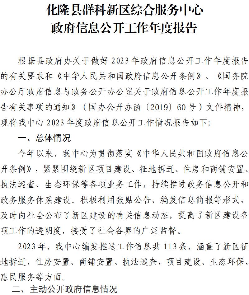 化隆县群科新区综合服务中心2023年度政府信息公开工作年度报告