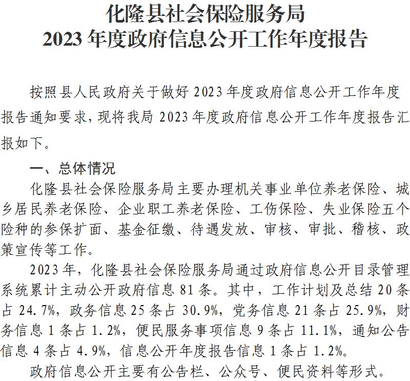 化隆县社会保险服务局2023年度政府信息公开工作年度报告