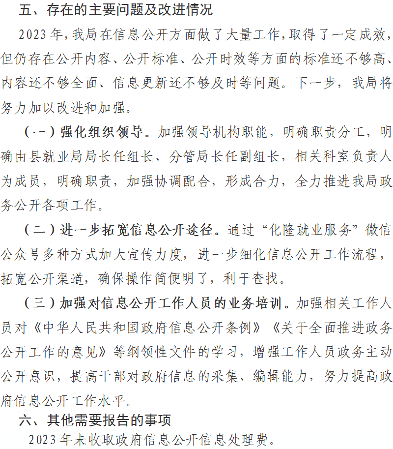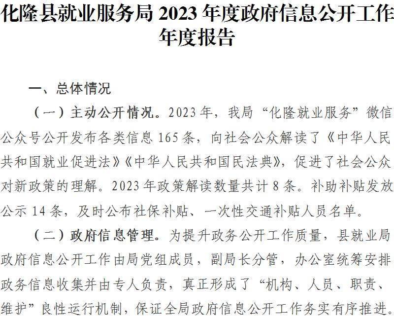 化隆县就业服务局2023年度政府信息公开工作年度报告