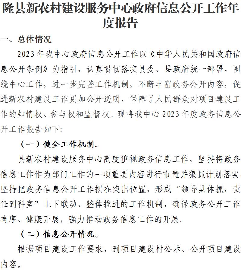 化隆县新农村建设服务中心2023年政府信息公开工作年度报告