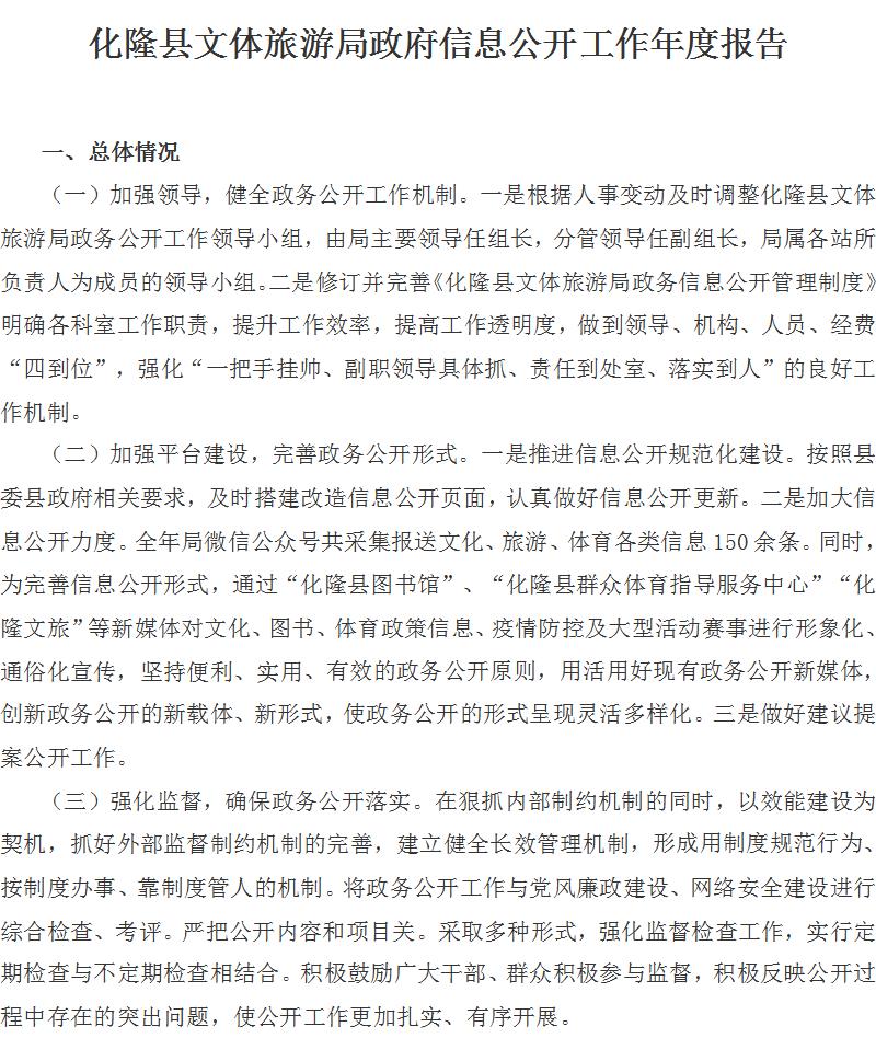 化隆县文体旅游局2023年政府信息公开工作年度报告