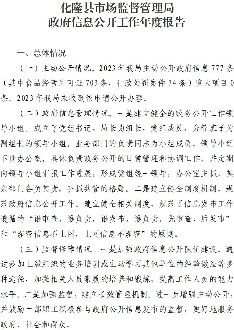 化隆县市场监督管理局2023年政府信息公开工作年度报告