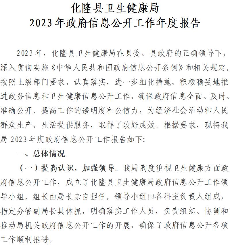 化隆县卫生健康局2023年政府信息公开工作年度报告