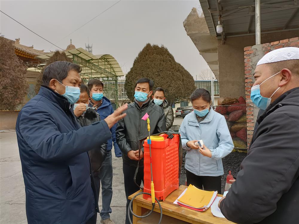 在群科镇乙沙清真寺,马占奎县长详细查看了清真寺的消杀记录、测温记录、人员值守、活动场所消毒等措施落实情况。他指出,我县宗教寺院众多,人员聚集风险较大,绝不能掉以轻心。各乡镇、民宗部门要加强组织领导,逐级夯实防控责任,大胆管理、敢于较真碰硬,将各项防控措施落实到第一线;要加大宣传力度,积极主动做好信教群众的劝导工作,教育引导信教群众坚持做到戴口罩、勤消毒、勤洗手、少出门,自觉在家中做礼拜,避免人员聚集,发挥好宗教团体、宗教界人士和信教群众的积极作用。