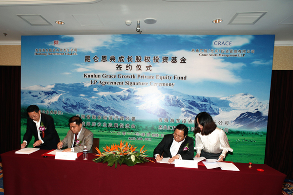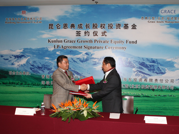 4月16日,青海海东投资有限公司与恩典汇智(北京)投资有限公司合作成立“昆仑恩典成长基金”签约仪式在上海举行。省政府副省长高云龙出席签约仪式并致辞。海东地委书记于丛乐、行署专员金长华、副专员马丰胜,平安、互助、乐都县政府,地区农牧、科技、财政等部门主要负责同志出席了签约仪式。基金的成立,得到了国务院西部开发办和海峡两岸农业发展促进会的大力支持。中国国民党中常委连胜文先生发来贺信并派特使专程莅临现场致贺;中共青海省委书记、省人大常委会主任强卫先生对此项工作给予了高度关注,并专门发来了贺信;国内知名专家谢正观博士、门洪华博士以及英国、韩国、台湾、香港等地的世界著名企业的知名人士亲临签约仪式祝贺。