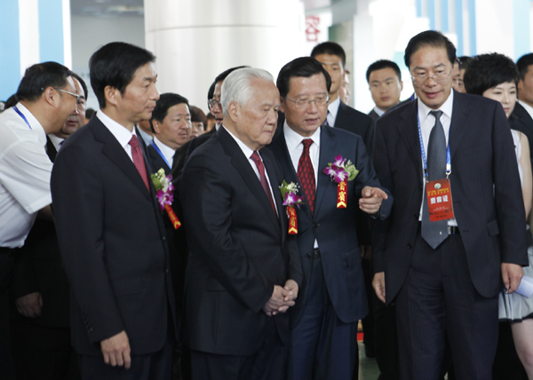 上午,全国政协原副主席陈锦华在青海省委书记、省人大常委会主任强卫和省委副书记、省长骆惠宁的陪同下到青洽会海东展馆参观。