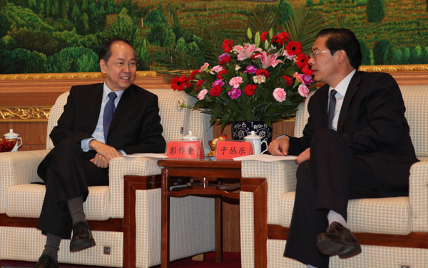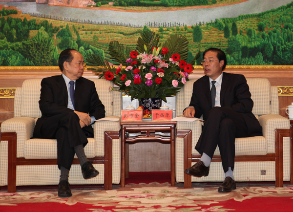 上午,海东地委书记于丛乐,地委副书记、行署专员金长华在海东会议中心会见台湾等地客商。地委委员、行署副专员初军威、专员助理王树和行署秘书长汪山林陪同。