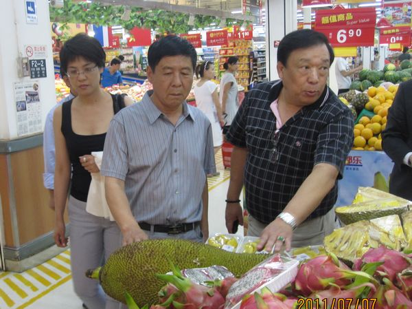 在这次考察活动中,金专员一行于7月6日下午考察了大成万达(天津)有限公司,听取了公司负责人的介绍,参观了解了公司生产的全过程;7月6日晚参加了2011第四届津台投资合作洽谈会,出席了这次高规格会议的开幕式和会展;7月7日金专员一行9人到国家发改委拜见了国务院西部开发办公室副主任曹玉书,向曹玉书主任作了工作汇报。同日,金专员一行考查了卜蜂莲花连锁超市,了解了超市产品的供给、销售和管理情况并与执行副总裁进行了座谈并就下一步借助卜蜂莲花连锁超市这个平台打开海东农产品销售市场等事宜进行了商谈。7月9日,行署专员金长华、行署专员助理王树和一行实地考察了北京大兴区老果树品种更新、技改和农业产业化发展情况,下午,考察了朝阳区蟹岛农业观光园。蟹岛农业观光园是农为本,以村为特色,以环保绿色有机食品为健康的旅游度假村。通过考察,与蟹岛集团达成了两点共识,一是要为海东提供技术培训平台。二是要由平安金阳光和民和万亩樱桃园两个项目对蟹岛进行认真考察学习,借鉴其先进经验。