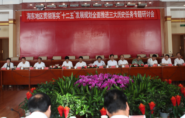 2011年7月16日上午,贯彻落实“十二五”发展规划全面推进三大历史任务专题研讨会在海东会议中心召开。这次会议是在海东全区上下全面贯彻落实省、地“十二五”发展规划和海东“三大历史任务”的大背景下召开,主要任务是进一步研究谋划加快区域经济发展的政策措施,统一思想,鉴定信心,推动海东地区经济社会又好又快发展。
