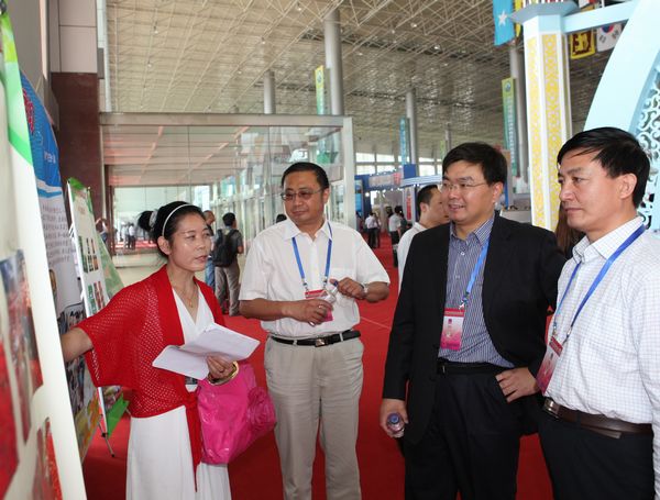全国政协副主席厉无畏在省领导的陪同下参观海东展馆