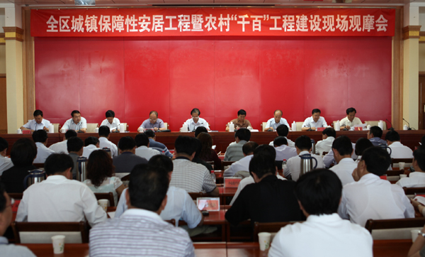 2011年7月29日,全区城镇保障性安居工程暨农村“千百”工程建设现场观摩会在平安县举行。上午,地委、行署主要领导和省住房和城乡建设厅领导以及与会人员到平安县沈家村、古城乡、新庄尔村农村“千百”工程建设现场、平安镇杨家路城镇保障性住房项目、互助路城镇保障性住房项目现场进行观摩。下午,与会人员在海东会议中心开会。会议首先由行署副专员王发昌通报全区城镇保障性住房和农村住房建设进展情况,六县分别作大会发言。