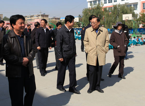 10月16日,国家督学顾问、北京市人大常委会原副主任陶西平带领国家“两基”督导检查组一行,督导检查海东地区和平安县“两基”工作。副省长高云龙,省教育厅厅长王予波,海东地委书记于丛乐,地委副书记、行署专员金长华,地委副书记车军平,行署副专员赵生启,平安县委书记何延年,平安县委副书记、县政府县长李立勤等省、地、县领导陪同检查。