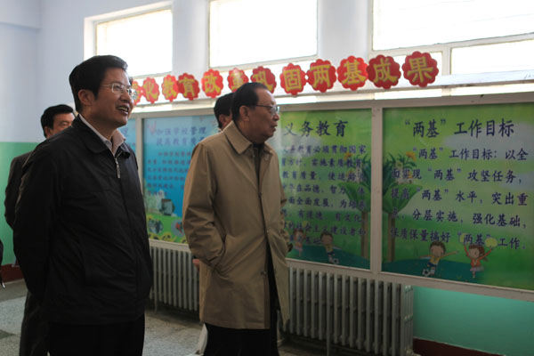 随后,检查组到平安县第三小学,沙沟乡中心学校、树尔湾小学,小峡镇下店初级中学,深入课堂、学生宿舍、理化生物实验室和图书室等,实地查看有关“两基”工作状况,与乡镇干部、学校教师、中小学生和当地群众亲切交谈,进一步了解有关情况。