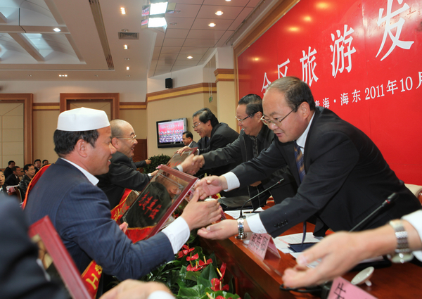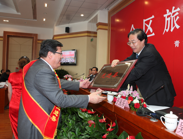 会上,地委副书记车军平宣读《中共海东地委、海东地区行政公署关于表彰全区旅游工作先进县、先进单位和先进工作者的决定》