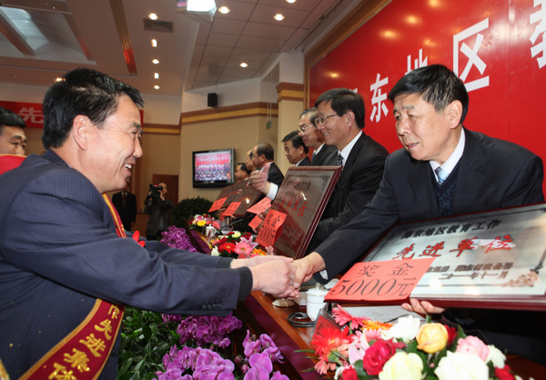 地委副书记、行署专员金长华为教育先进集体颁奖