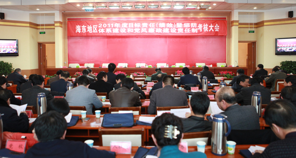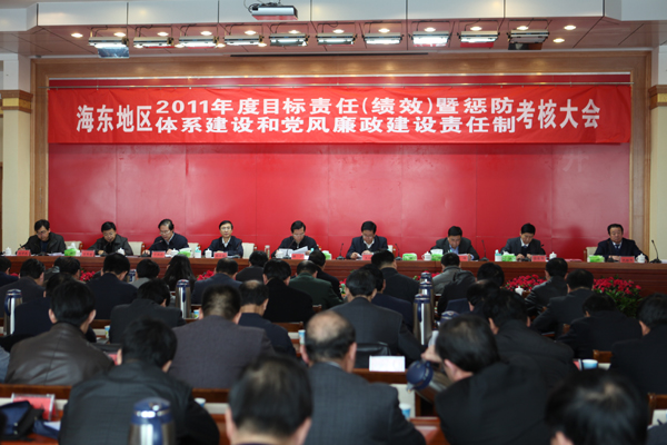 2012年2月23日上午,海东地委、行署召开2011年度领导班子及领导干部目标责任(绩效)暨惩防体系建设和党风廉政建设责任制考核大会。