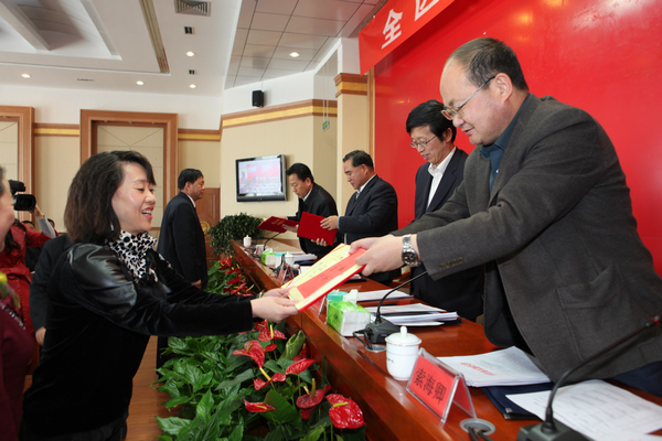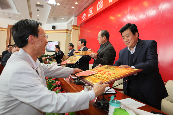 行署副专员赵生启向信访先进集体颁奖