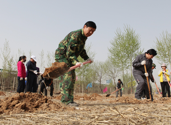 4月28日,海东地区地直机关全体干部职工参加互助高寨开发区边角地带千亩林义务植树活动。地委书记于丛乐,地委副书记行署专员金长华,人大地区工委主任秦国祥,行署副专员马丰胜,行署副专员曹生渊等领导参加了此次活动。