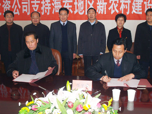 座谈会上,省投资公司向我区捐赠了100万元新农村建投资金,并与行署签订了《省投资公司支持海东地区新农村建设协议书》,双方协定:从2008年起,至2017年10年内,省投资公司每年向海东投资100万元,共计1000万元,支持资金于每年第一季度内到位。主要用于特色农业、产业化经营、农民增收项目和农村基础条件改善。