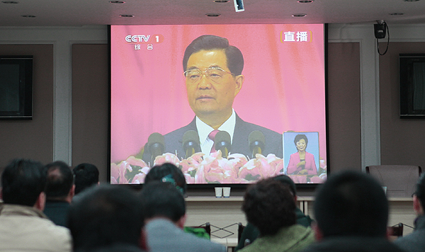行署办公室组织干部职工收看党的十八大开幕电视实况转播