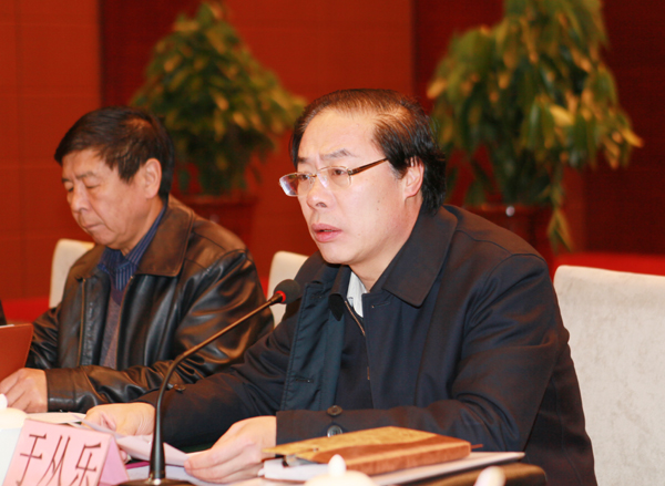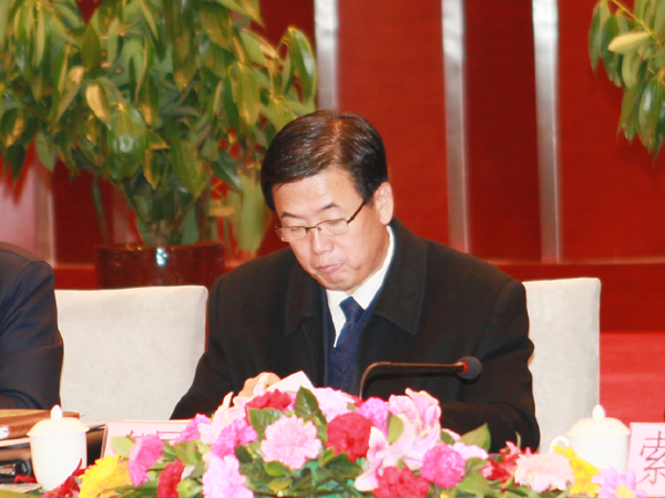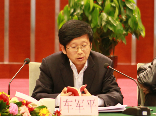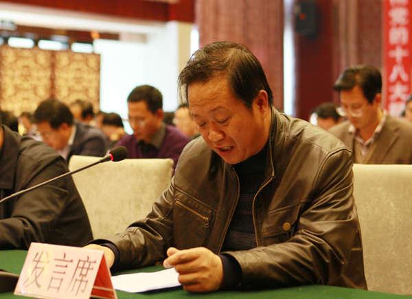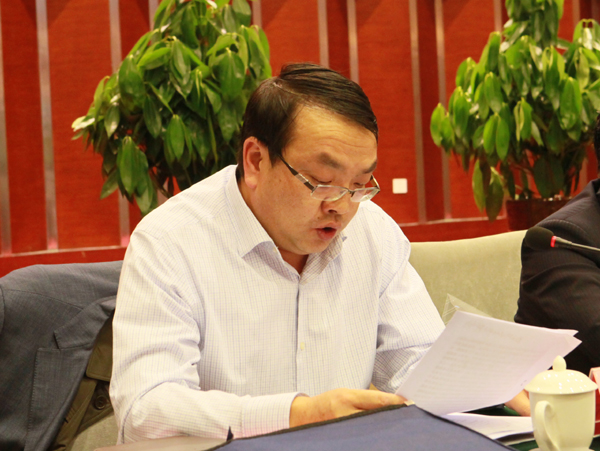 海东地委书记、海东工业园区党工委书记于丛乐主持会议并导读党的十八大报告