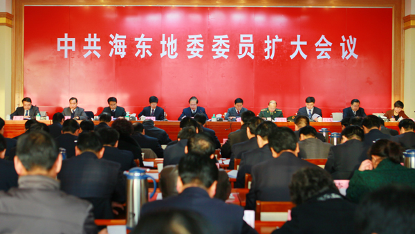 1月18日上午,中共海东地委委员扩大会议在会议中心召开。这次会议的主要任务是以党的十八大精神为指导,全面贯彻落实中央经济工作会议、省第十二次党代会、省委十二届三次全体会议精神,进一步调标定位、明确任务,动员全区各级党委、政府和干部群众奋发进取,乘势而上,努力实现海东经济社会发展新跨越。