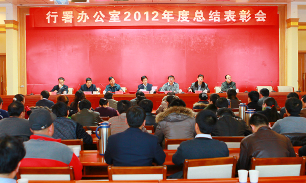 元月25日,行署办公室召开2012年度工作总结表彰会,会上行署副秘书长、办公室主任黄继成回顾总结了过去一年的工作,并对今年工作进行全部安排部署。黄继成同志在谈到去年工作时指出,在地委、行署的正确领导下,行署办公室上下齐心协力,真抓实干,“三服务”工作取得了新的成绩,为全力服务海东经济建设“三大历史任务”提供了高效服务。同时指出,面对新形势、新任务,办公室干部职工要努力提高办文、办会、办事效率,在应急处置、应变能力、应对环境等方面不断改进提高,以更加饱满的热情,扎实的作风,高效的服务提升办公室服务工作能力。