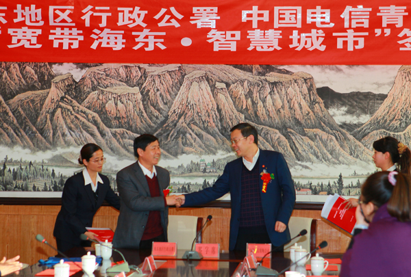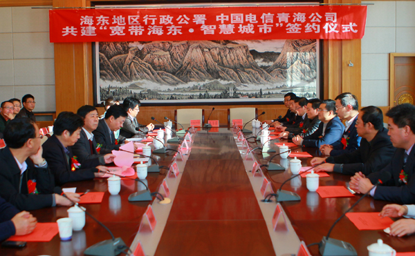 海东地区行政公署、中国电信青海公司共建“宽带海东、智慧城市”信息化战略合作框架协议签字仪式在海东举行