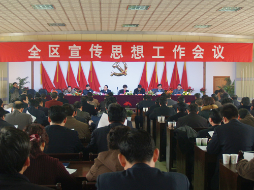 地委委员、宣传部部长张宁作了题为《高举旗帜、科学发展、主动服务,以改革创新精神开创宣传思想工作新局面》的工作报告。张宁部长简要回顾和总结近几年及2007年全区宣传思想工作,对2008年全区宣传工作提出了新的要求。