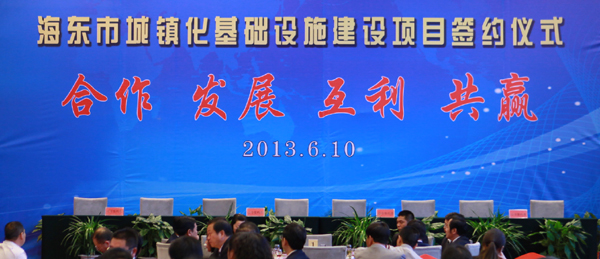 海东城投公司、海东六县人民政府分别与太平洋建设集团有限公司、浙江中南建设集团有限公司、湖北桂乡建筑安装工程有限公司、青海平兴建设集团有限公司等20家企业签订了城镇基础设施项目建设合作协议。