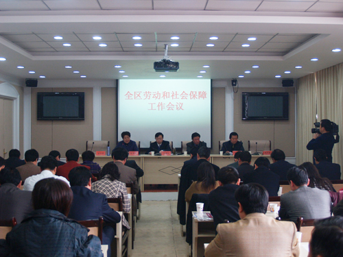 三月五日下午,全区劳动和社会保障工作会议在行署三楼会议室召开,行署副秘书长黄海泉同志主持会议,会上地区财政局、地税局就如何进一步支持劳动保障工作进行了专题发言,地区劳动和社会保障局局长朱秀兰同志,认真总结了2007年全区劳动保障工作的成绩和经验,深入分析当前劳动保障工作面临的机遇和挑战,安排部署2008年工作任务。地区劳动和社会保障局与各县人事和劳动保障局签订了2008年目标责任书。最后地委委员、行署副专员赵建生同志做了总结讲话,他指出2008年全区劳动和社会保障工作要努力实现“五个”新突破,一是就业和再就业工作要取得新突破;二是社会保障体系建设要取得新突破;三是农村富余劳动力转移要取得新突破;四是维护劳动者合法权益工作要取得新突破。 |