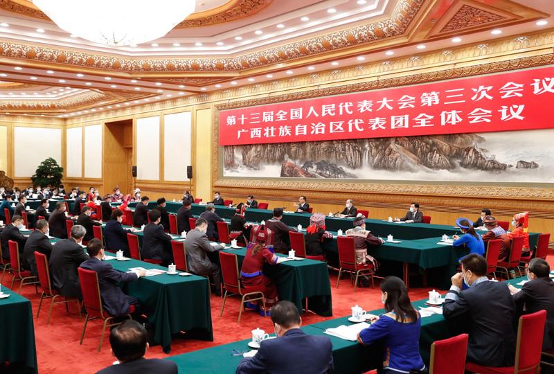 中共中央政治局常委、国务院总理李克强5月23日上午来到他所在的十三届全国人大三次会议广西代表团,参加审议政府工作报告。鹿心社、陈武、彭石华等代表围绕着力实现“六稳”“六保”、推进西部陆海新通道建设、决战脱贫攻坚等问题踊跃发言。李克强与大家互动交流,深入讨论。他说,在以习近平同志为核心的党中央坚强领导下,广西与全国一样,面对错综复杂的国内外环境和突如其来的新冠感染疫情,各族人民攻坚克难,奋发进取,疫情防控有力有效,经济社会发展和民生改善又取得新成绩。