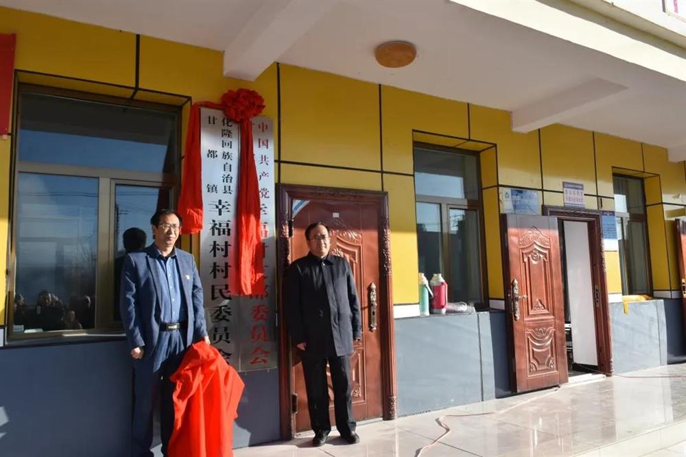 揭牌仪式上,县委副书记王国栋同志宣读了中共化隆县委关于同意撤销初麻乡塔麻村党支部、成立甘都镇幸福村党支部的批复和化隆县人民政府关于同意调整幸福村行政区划隶属关系的批复。县委书记刘建昱同志和甘都镇党委书记共同为幸福村党支部、村委会揭牌。甘都镇、初麻乡党委主要负责同志和幸福村村民代表分别作了发言。幸福村村民代表向县委、县政府敬送了锦旗,对县委、县政府近年来在推进幸福村易地扶贫搬迁工作中给予的关心和支持表达了由衷感激之情。最后,县委副书记王国栋同志讲话,讲话中对推进易地扶贫搬迁安置点基层组织建设项目中取得的成绩给予了充分肯定,并代表县委、县政府向幸福村和幸福村村民送去了衷心祝福。