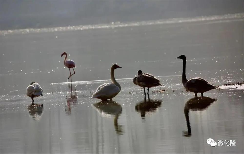 12月8日早晨,化隆县群科镇黄河库区的水面上,波光潋滟,鸟鸣啁啾。放眼望去,湛蓝的水面上水鸟成群,它们时而仰头高歌,时而低头戏水,甚是热闹。与往年不同的是,今年飞到化隆黄河沿岸一带的水鸟数量增多,有摄影爱好者更是拍到火烈鸟。