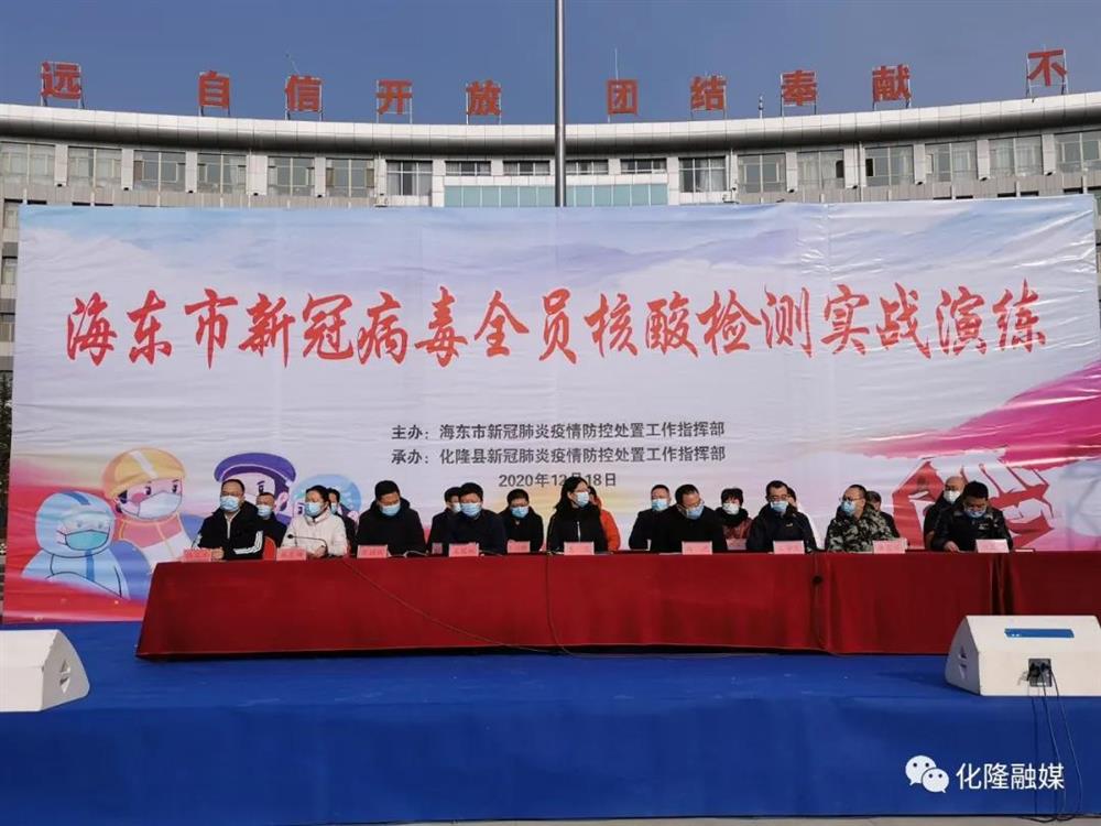 12月18日,海东市开展新冠病毒全员核酸检测实战演练,省卫生健康委员会应急办主任马忠;省疾病预防控制中心传染所副所长王学文;省疾病预防控制中心检验检测中心病毒检验科副科长唐志坚;海东市人民政府副市长、市新冠感染疫情防控处置工作指挥部副指挥长袁波;海东市新冠感染疫情防控处置工作指挥部办公室、市卫生健康委员会副主任韩溢才;中共化隆县委副书记、县新冠感染疫情防控处置工作指挥部副指挥长王国栋;化隆县委常委、宣传部部长、县政府副县长、县新冠感染疫情防控处置工作指挥部副指挥长敏喜梅等领导参加指导演练。市委宣传部、市教育局、市工业和信息化局、市公安局、市民政局、市交通运输局、市卫生健康委、市应急局、市市场监管局、市品牌产业促进局主要负责人。县委各部门、县直各单位、省驻县各单位、各乡镇、县乡各级医疗机构负责人参加观摩。此次演练活动由市新冠疫情防控处置工作指挥部主办,化隆县新冠疫情防控处置工作指挥部承办。