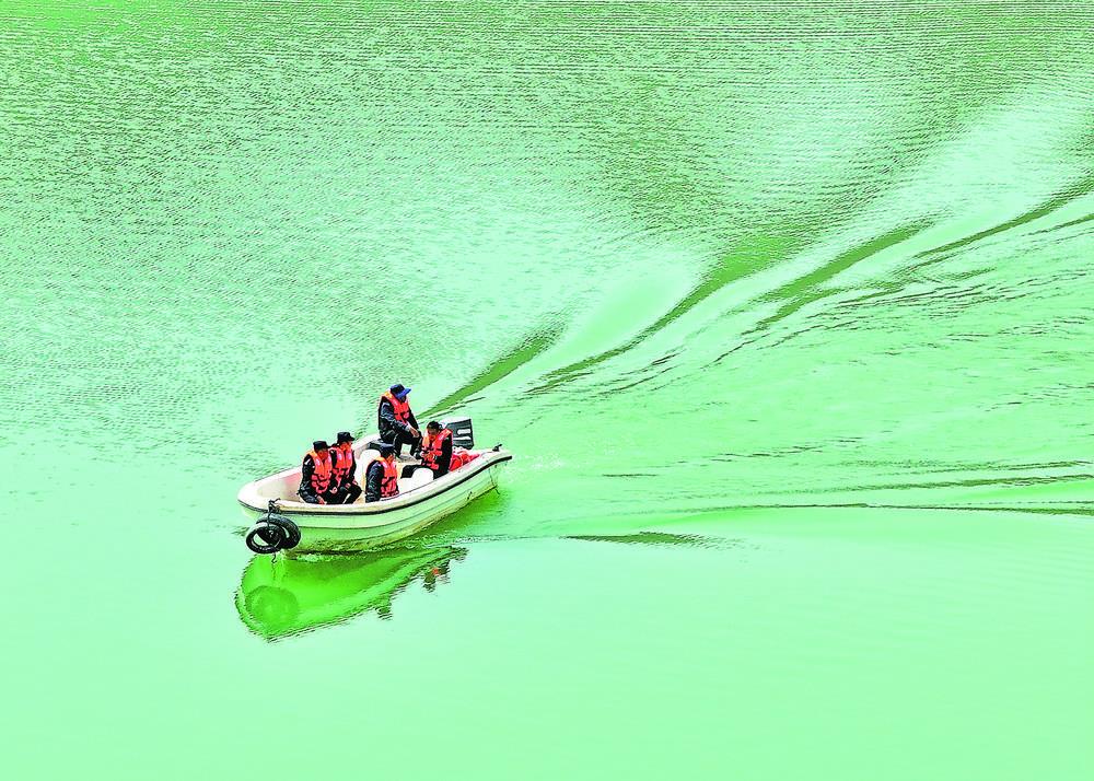 水面上,一艘快艇划破碧波,民警乘坐的快艇在辖区黄河水域往来穿梭,有效弥补了陆地巡逻的盲区。在巡逻过程中,民警密切关注河面情况,检查岸边是否有污水直排入河、违规倾倒垃圾等现象。“一旦发现异常,立即靠岸处置或通过对讲机与指挥中心联动,形成高效的执法闭环。”化隆县公安局森警大队辅警昂尖措说。