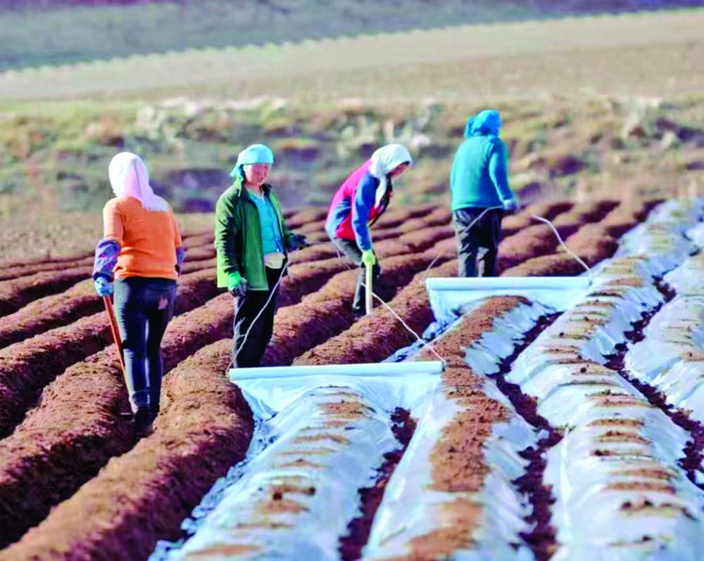 近年来,海东市化隆回族自治县充分利用自身土地优势,不断优化产业结构,因地制宜发展特色农业产业,充分调动农民发展粮食种植积极性,持续催生特色富民产业,形成以马铃薯为主,小麦、青稞、油菜等多种作物为辅的特色农业产业格局。图为查甫藏族乡百姓田间起垄忙覆膜。