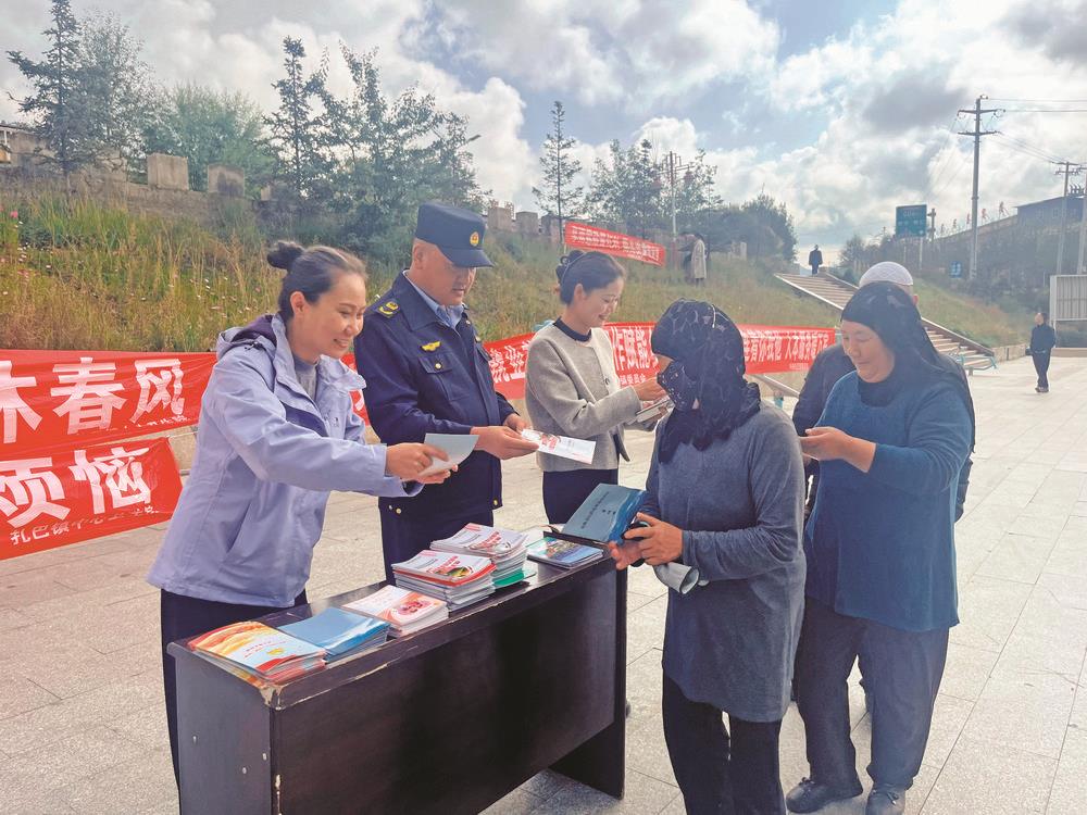 国庆中秋“双节”期间,海东市化隆回族自治县扎巴镇各级党组织和广大党员干部创新推出“流动办公桌”服务模式,把办公桌搬到群众“家门口”,联合扎巴镇司法所、市场监管所、乡卫生院、农村信用社、民政大厅、乡村振兴办等部门,集中开展医疗养老、低保救助、食品安全、法律咨询等服务,让群众“进一扇门、办多件事”。图为活动现场。