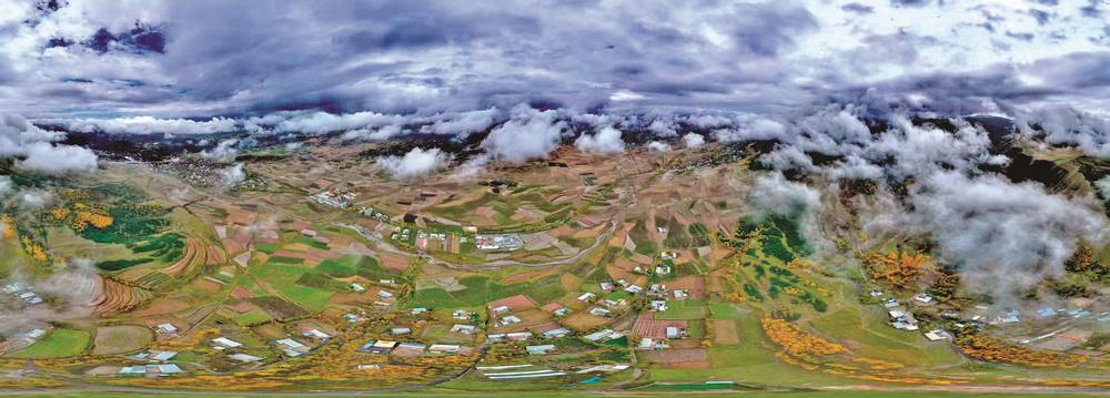 各乡镇航拍景色壮美,风光旖旎,天地像是被打翻了的调色盘,