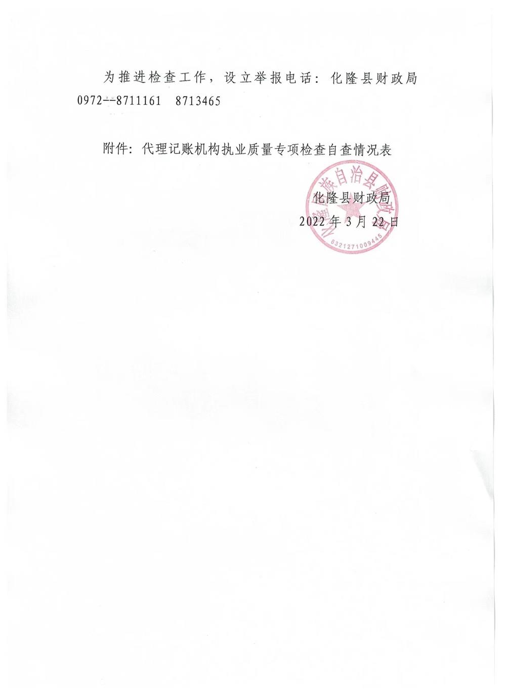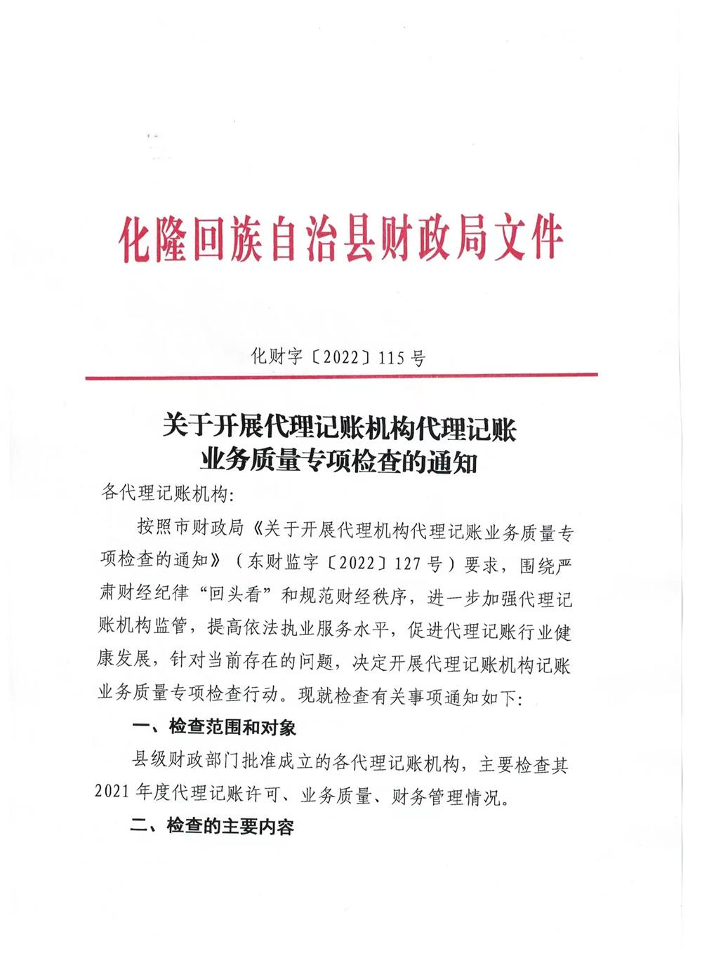 化财字(2022)115号关于开展代理记账机构代理记账业务质量专项检查的通知