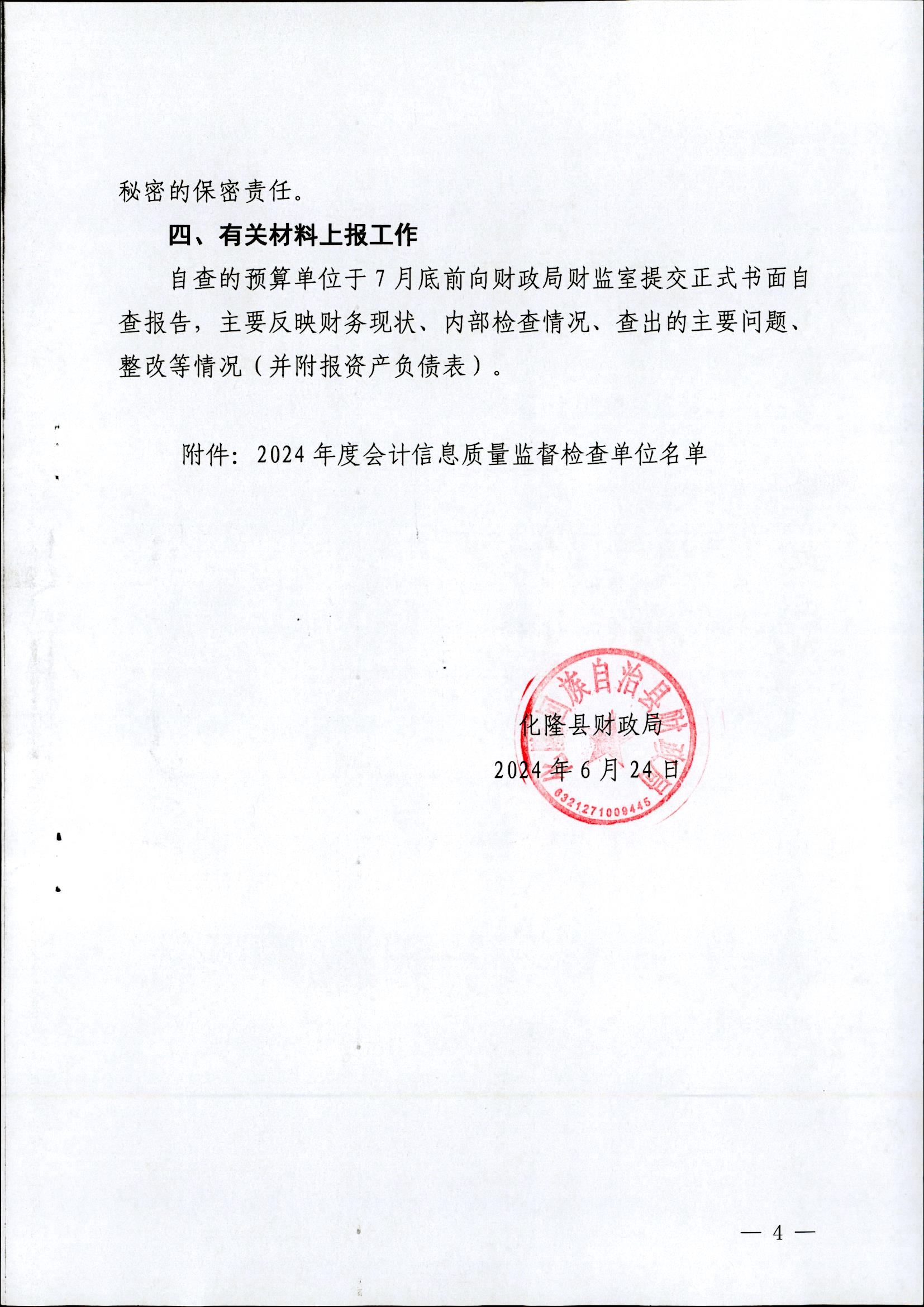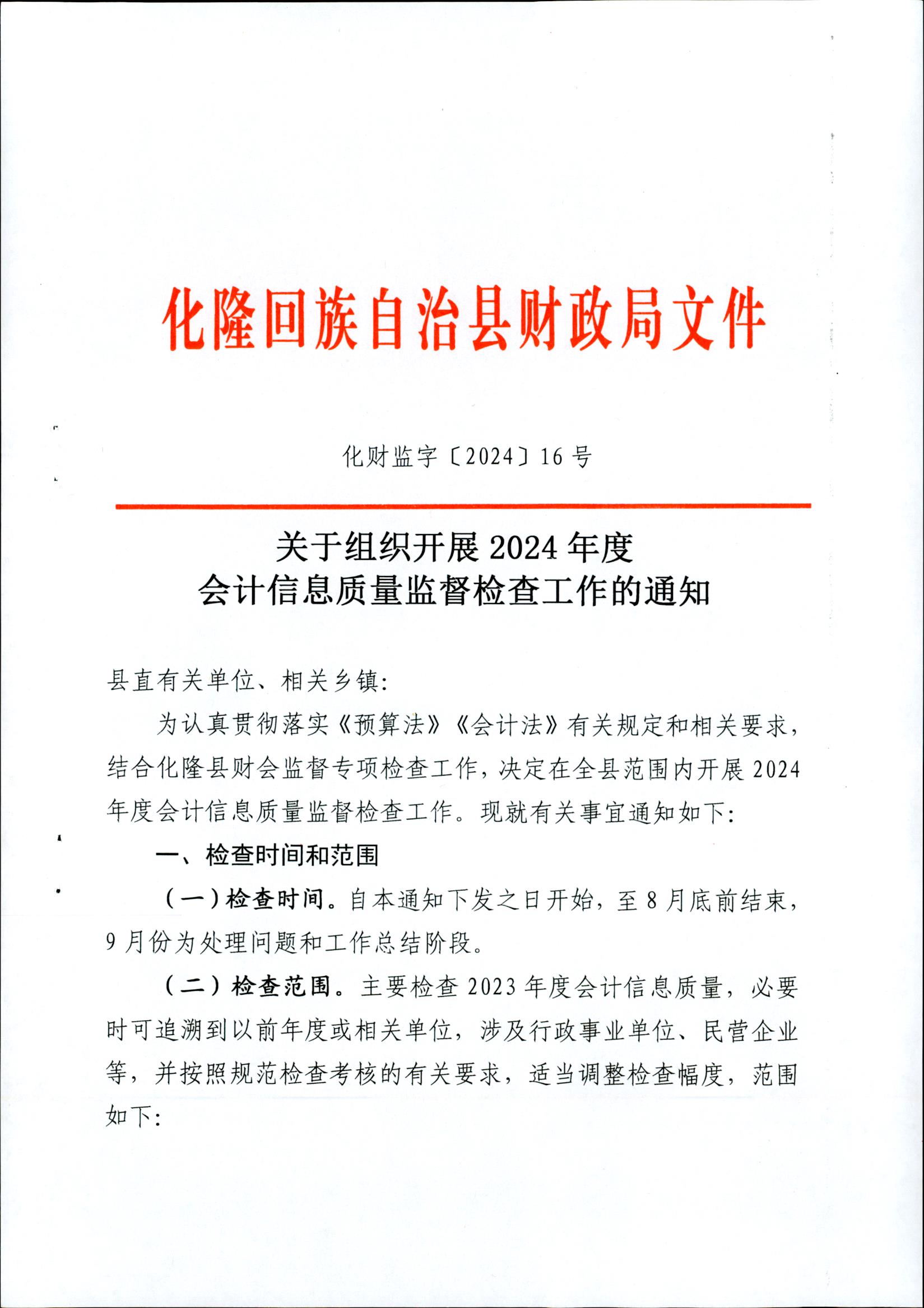 关于组织开展2024年度会计信息质量检查监督检查工作的通知